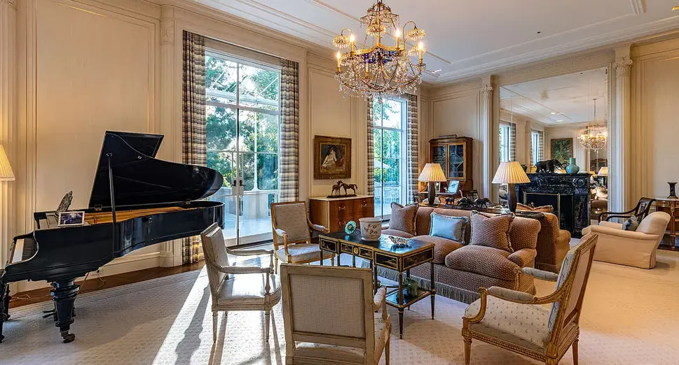 All feature intricate period moldings, high ceilings, steel windows and abundance of natural light. Upstairs is equally detailed with a significant primary suite, featuring 2 sitting rooms, large main bedroom, double marble baths and closets. An additional 3 bedrooms provide for family or guests. An incredible pool pavilion, perfect for hosting large scale events, doubles as a professional movie/screening room. Irreplaceable and incredible landscape design by Benjamin Purdy. The grounds feature a tiled 60 ft pool, formal rose gardens, vegetable/herb garden, tropical botanical garden, N/S tennis court with viewing pavilion, sports court, and vast grass lawns. A full-sized paved road encircles the entirety of the property. Built to be the most important estate in the country, maintained and stewarded until today. A once in a lifetime opportunity to acquire a legend.