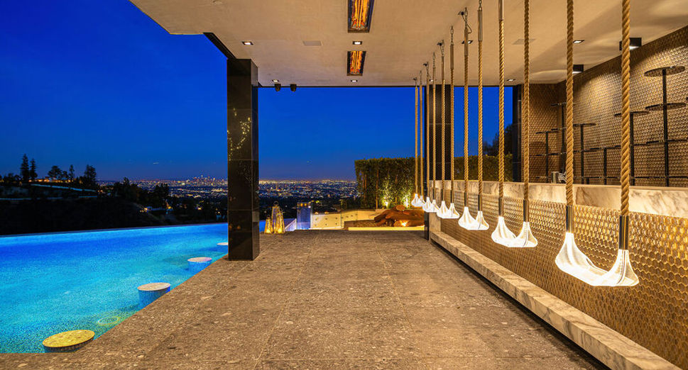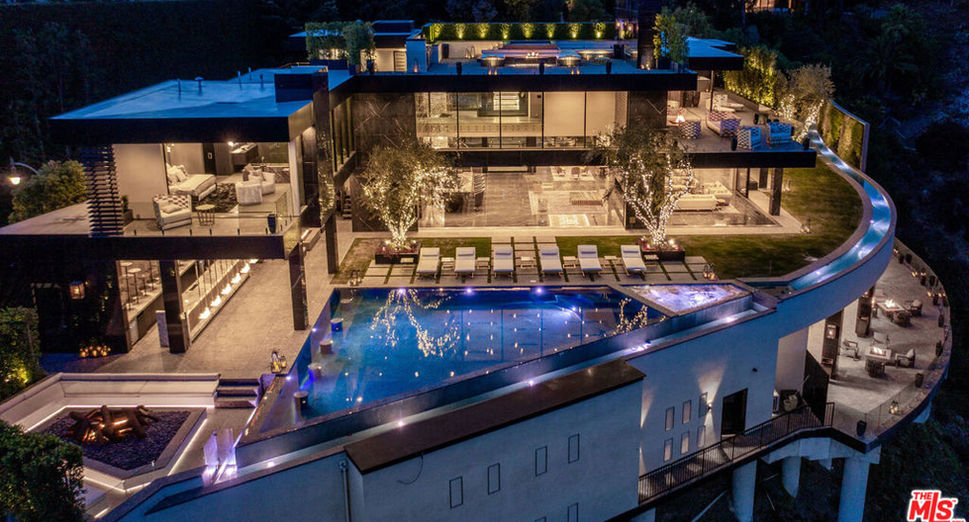 La Fin, translated as "The End", aims to provide accommodation and entertainment on a scale comparable only to the world's finest hotels. An extraordinary estate perched atop Bel Air, redefines luxury living with unparalleled sophistication and breathtaking views of Los Angeles and Century City. This meticulously crafted residence, which took over five years to complete, epitomizes opulence with 12 bedrooms, 17 baths. Every corner of La Fin exudes extravagance, from its grand glass-walled entryway and a majestic 44-foot crystal chandelier to a sprawling formal living room adorned with shimmering chandeliers and hand-carved stone latticework around a monumental fireplace. The estate's lower level dedicated to entertainment and wellness, featuring a state-of-the-art wine cellar with a stunning Murano glass installation, a climate-controlled cigar lounge, and a sleek vodka tasting room. A fully equipped fitness center includes a climbing wall, Peloton bikes, steam room, and a spa, while a sound-proof cinema with motorized Belgian leather seating promises cinematic indulgence. These numerable elements, however, are only the beginning of the home's superlative qualities, which extend to the bespoke furnishings created by the Italian artisan workshop La Contessina. Upstairs, the private quarters offer respite with a lavish primary suite boasting floor-to-ceiling lacquered Italian oak walls, a Portuguese marble fireplace, and boutique-worthy walk-in closets. The spa-like bathroom showcases bookmatched Calacatta gold marble, and a soaking tub carved from a single block of stone. Outdoors, La Fin transforms into an oasis of relaxation and entertainment with motorized Fleetwood pocket doors blurring the line between interior and exterior spaces. The infinity-edge pool overlooks a 23-foot retractable LED screen and an outdoor bar with swing seats, while a fire pit lounge provides warmth and ambiance. On the rooftop, a deck with built-in seating, a fire pit, and a spa offers panoramic views, ensuring every moment is a celebration of luxury and privacy. Security features such as fingerprint technology, an on-site caretaker residence, and a dedicated security command center provide peace of mind in this unparalleled retreat in the heart of Bel Air.